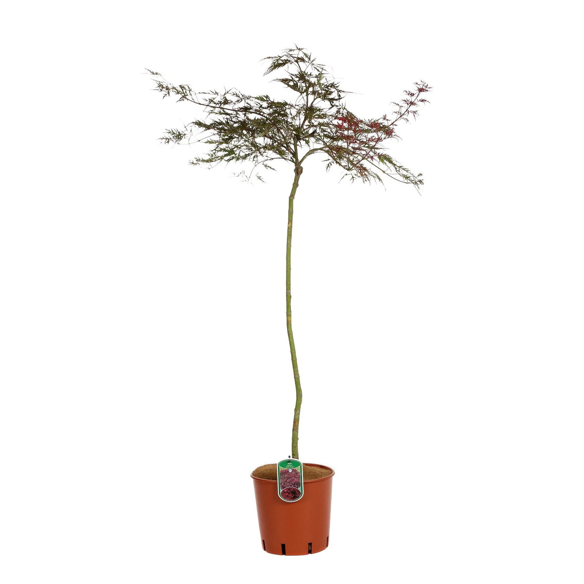 La pianta di Acer palmatum “Dissectum Stella Rossa” è un arbusto deciduo appartenente alla famiglia delle Sapindaceae ed originario dell’estremo Oriente, comunemente chiamato Acero giapponese. Portamento pendulo a forma di fungo e crescita lenta. Fiori di colore rosso porpora, sono riuniti in piccoli grappoli che fioriscono in estate, bellissimo fogliame ornamentale con foglie frastagliate giovani emergenti rosso-rosate in primavera, diventano rosso porpora scuro durante l’estate e rosso vivo in autunno. Pianta rustica resistente al freddo (fino a -15° C), predilige terreni ricchi e ben drenati. Non richiede molto spazio e può essere sistemata anche in zone d’angolo a mezz’ombra. Coltivata come pianta ornamentale, singola o in gruppi, è ideale in grandi parchi e piccoli giardini, si adatta alla coltivazione in vasi e fioriere.
