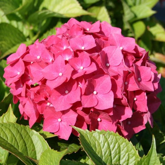 La pianta di Hydrangea macrophylla “Leuchtfeuer” è un arbusto deciduo di forma arrotondata, con foglie ovate, dentate, verde cupo lucido, lunghe fino a 20 cm, che in autunno tendono ad assumere tonalità aranciate o rossastre. Le infiorescenze sono corimbi appiattiti, larghi 15-20 cm, di numerosi fiori dai petali rossi. Abbondante fioritura estiva. Il colore dei fiori dipende dall’acidità del terreno e dalle sostanze disciolte in esso. Arbusto coltivato per le sue appariscenti infiorescenze, è ideale nelle bordure, come esemplare isolato o in vaso. Predilige un terreno fresco, drenato, preferibilmente sub-acido, con esposizione di mezz’ombra o ombra.